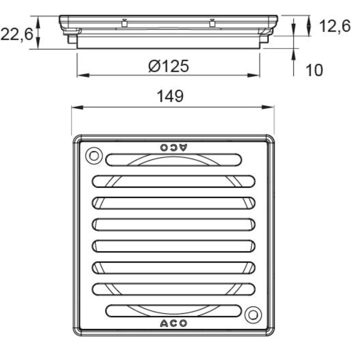 - Rahmen mit Gitterrost: Edelstahl, Abmessungen 150 x 150 mm