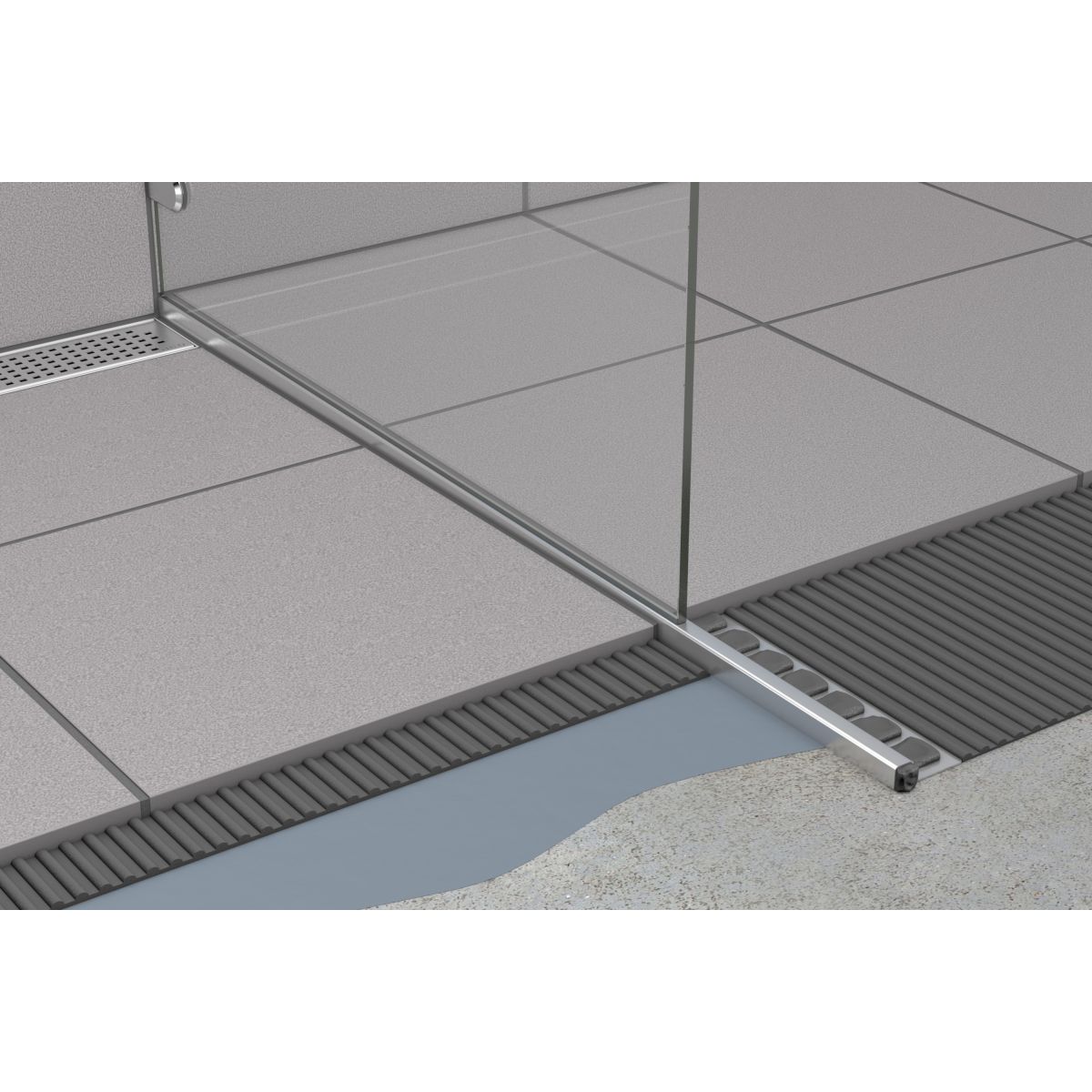 ACO ShowerStep ist ein Element für begehbare Duschen. Die Verkleidung der Dusche mit Keramikfliesen mit einem Gefälle von mindestens 2 % zum Abfluss hin hinterlässt an der Kante in der Regel eine schwer zu verarbeitende Fuge. ACO ShowerStep erleichtert dies. Es beschleunigt die Montage auf ästhetische Weise.
