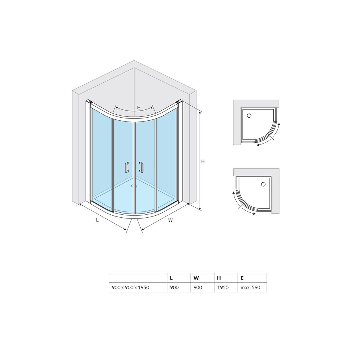 Actima Seria 600 Dusche 90x90 cm halbrund chrom Glanz/durchsichtiges Glas KAAC.1901.900.LP