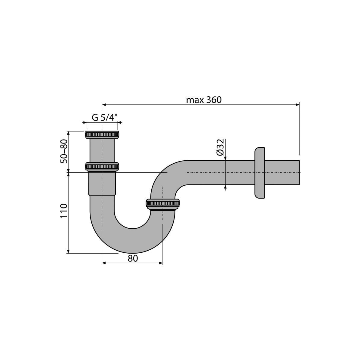 - Waschbecken-Halbsiphon „U“ DN32 mit 5/4"-Mutter