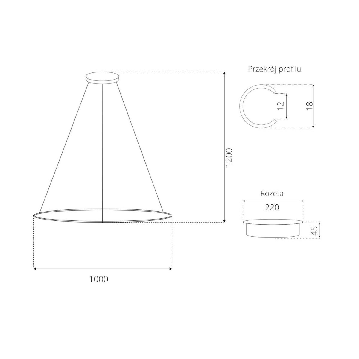 - Durchmesser des Lampenschirms: 100 cm