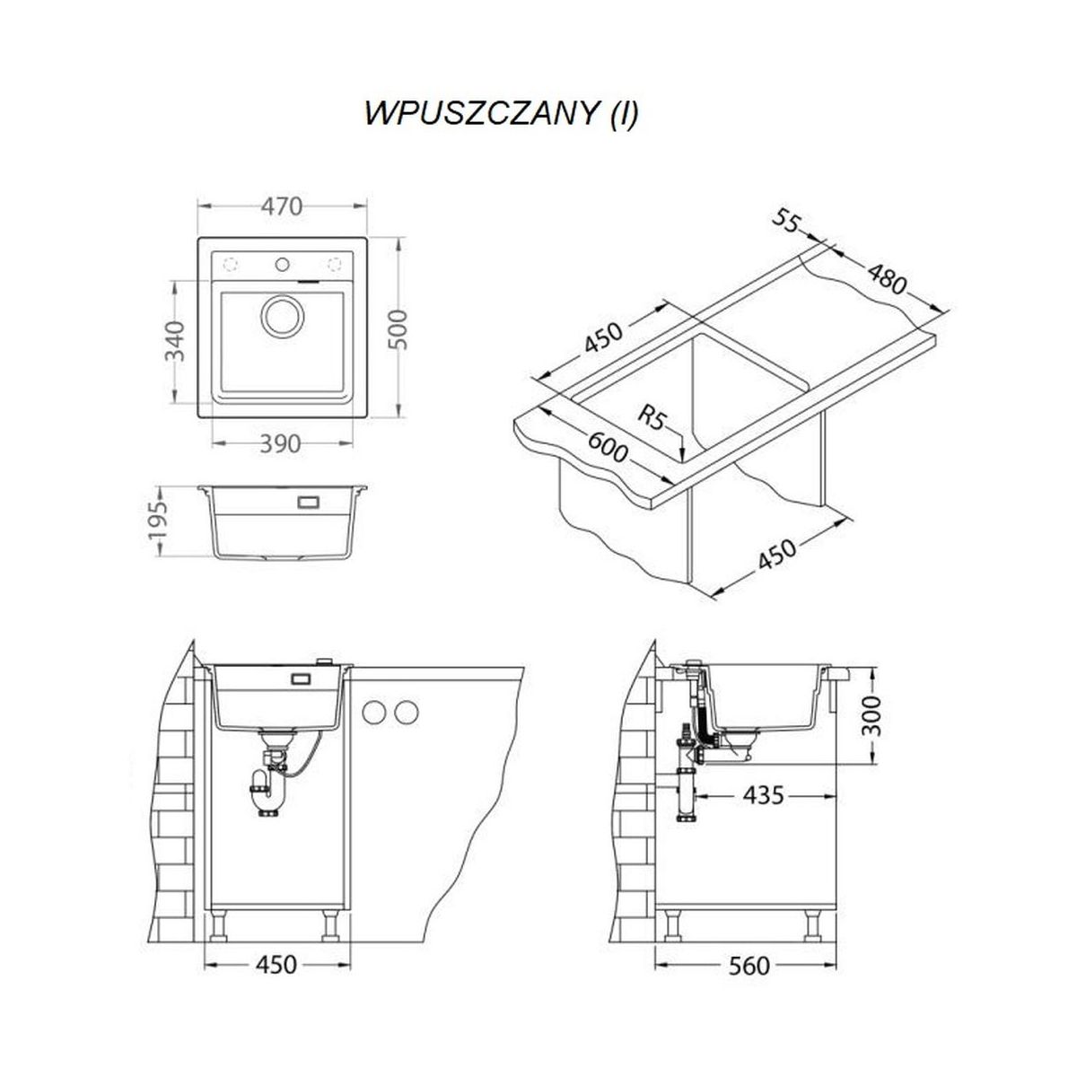 - Mindestunterbau (eingelassen): 45 cm