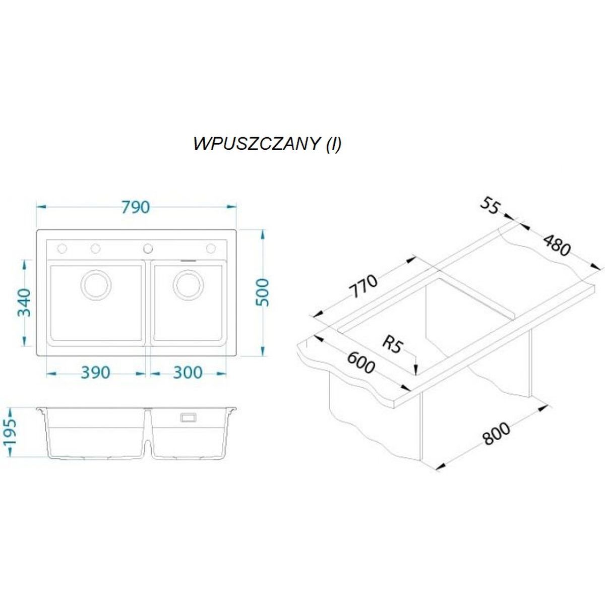 - Ausschnittmaße in der Arbeitsplatte (hängend): 77 x 48 cm