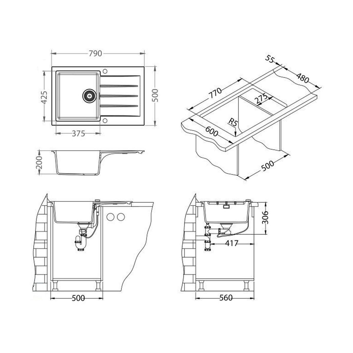 Alveus Cadit granitspüle 79x50 cm grau/graphit/onyx 1132025