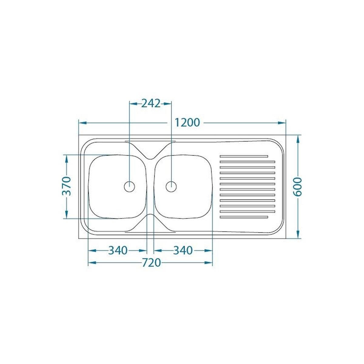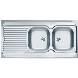 Die technische Zeichnung zeigt die Spüle in der linken Variante.