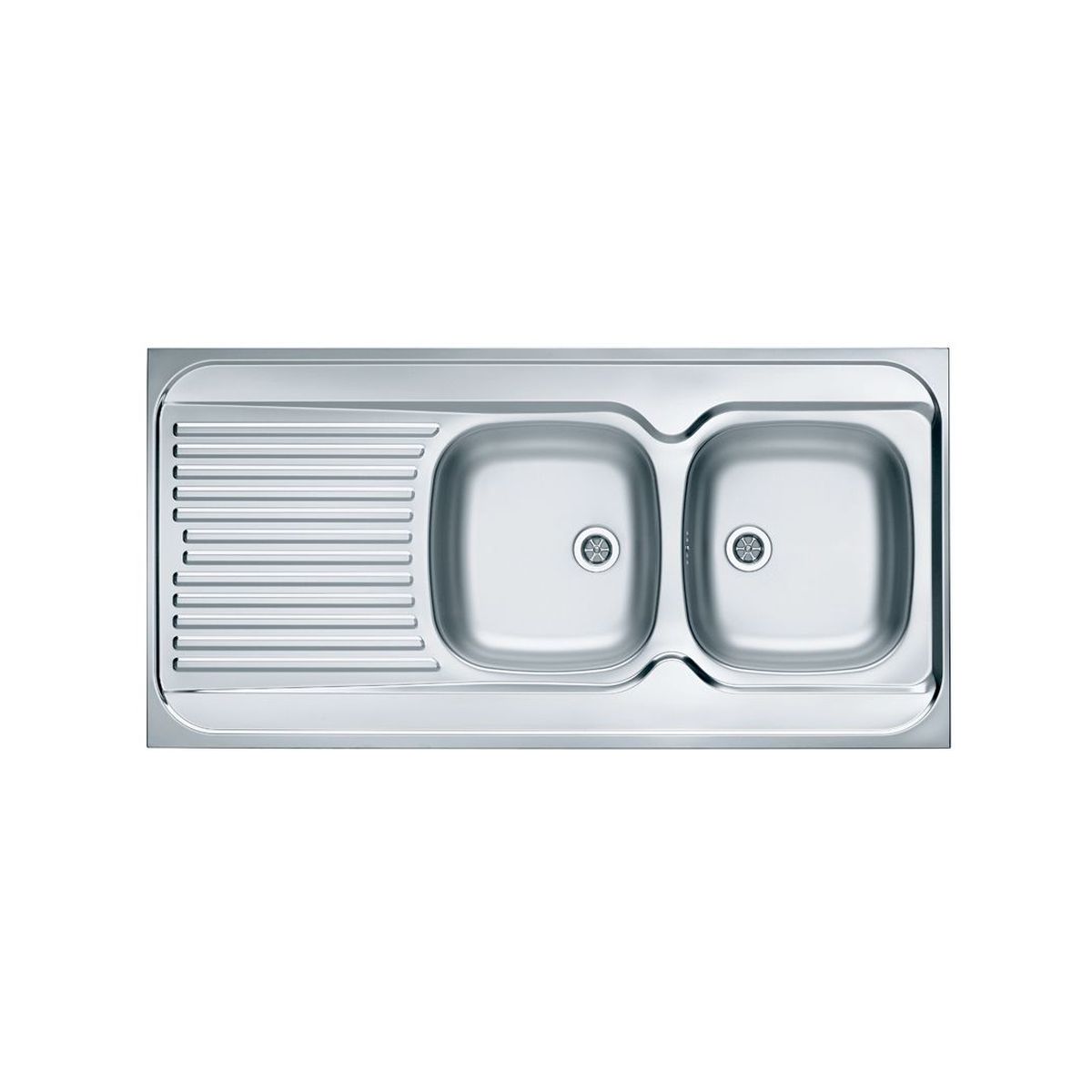 Die technische Zeichnung zeigt die Spüle in der linken Variante.
