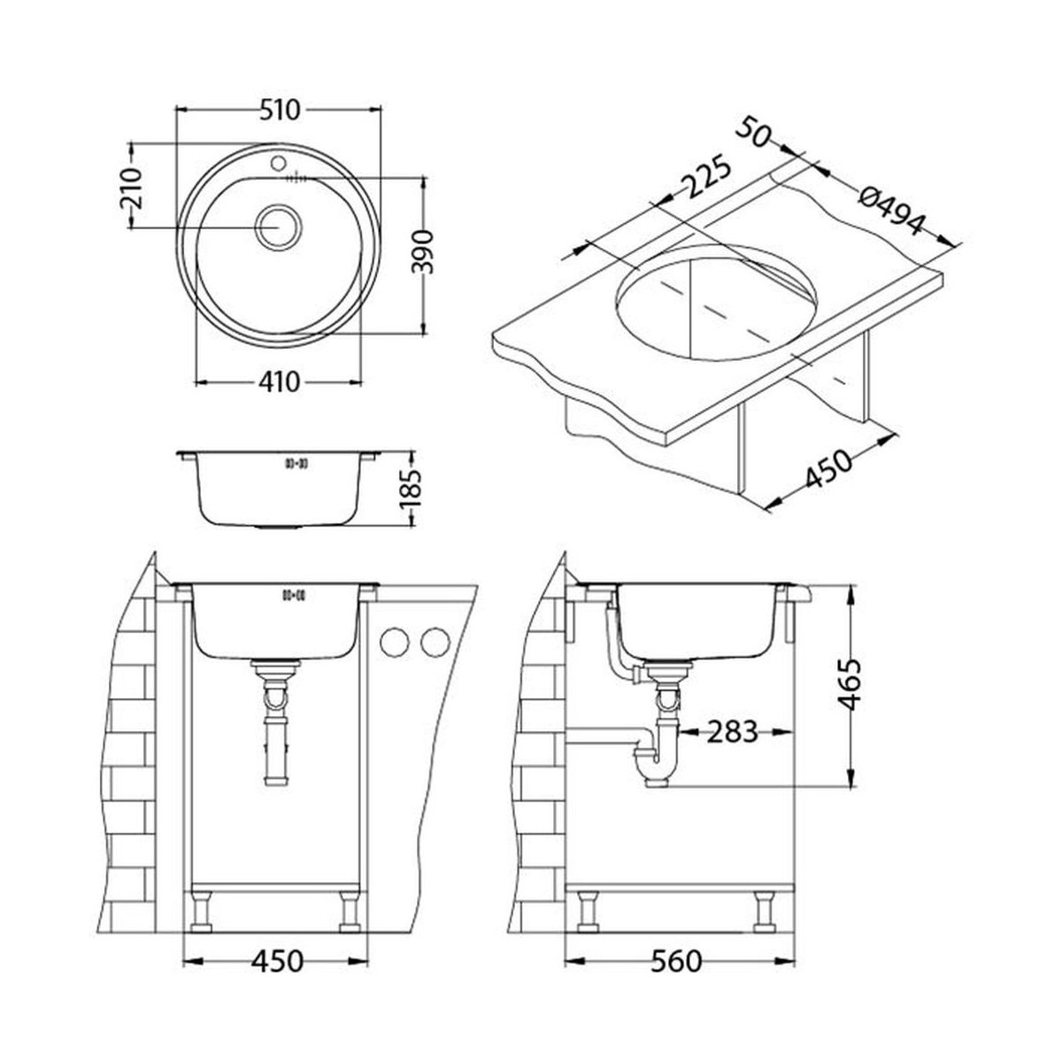 - Mindestunterbau: 45 cm