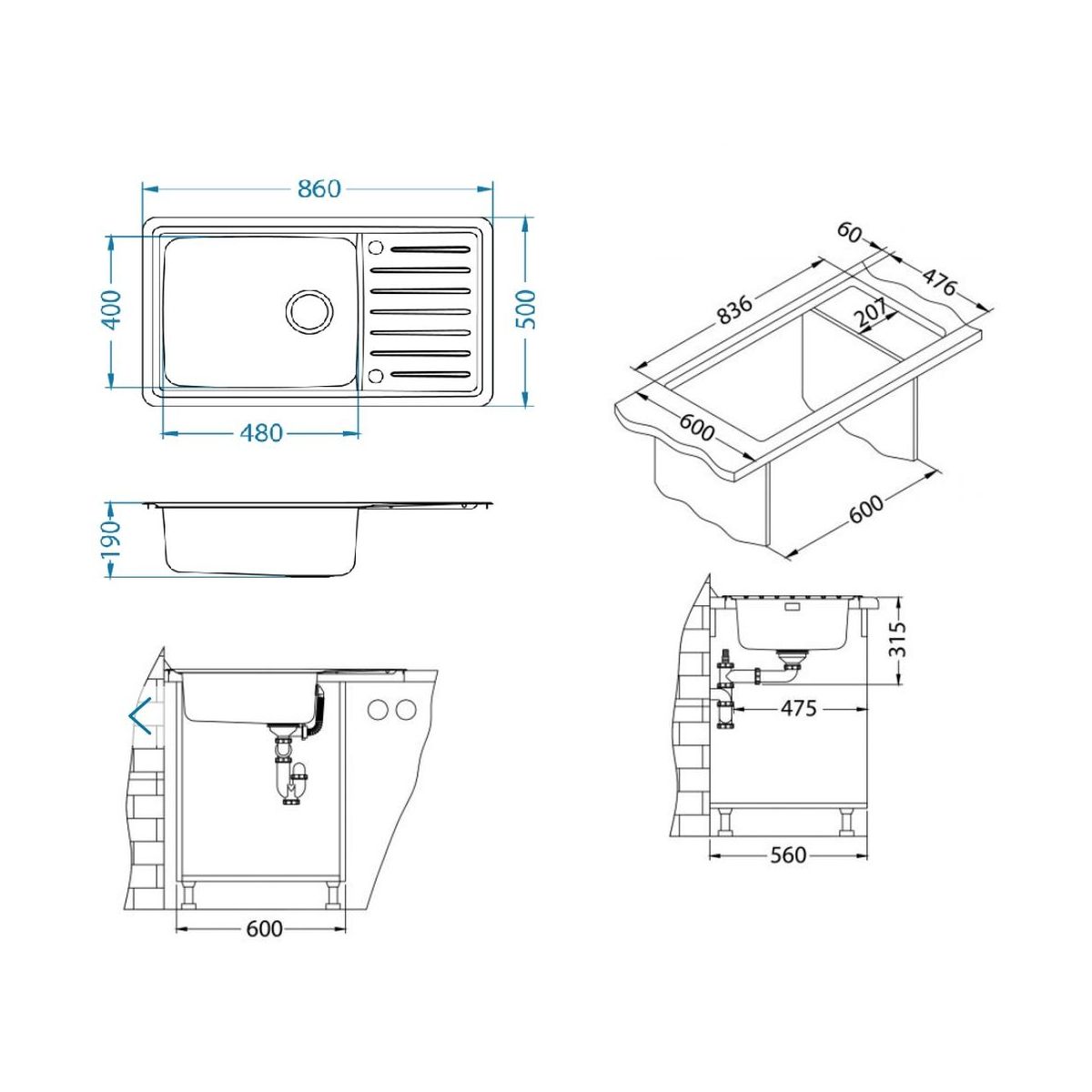 - Mindestunterbau: 60 cm