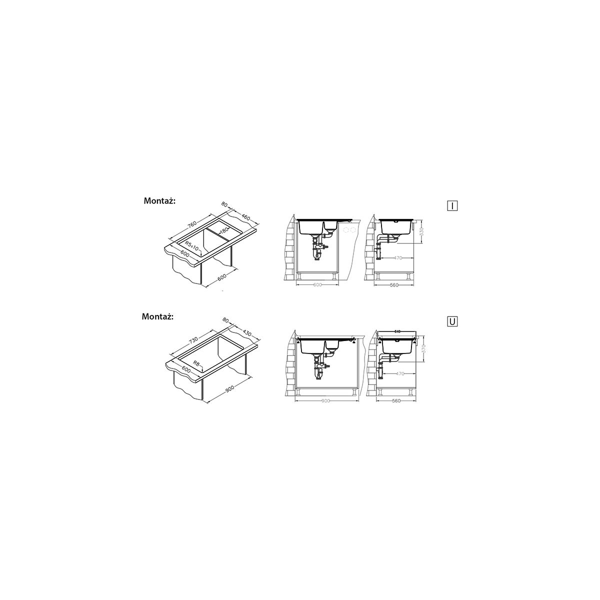 - Ausschnittmaße in der Arbeitsplatte: für I - 760 x 460 mm, für U - 730 x 600 mm