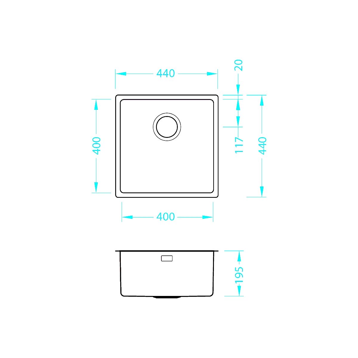 - Maße: 44 x 44 x 19,5 cm