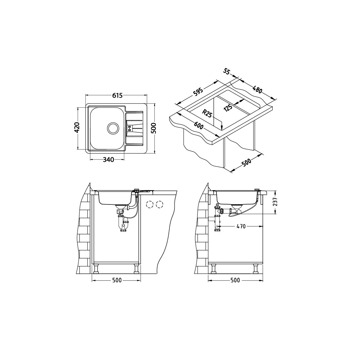 - Siphon mit Anschlussmöglichkeit für Waschmaschine/Geschirrspüler im Lieferumfang enthalten