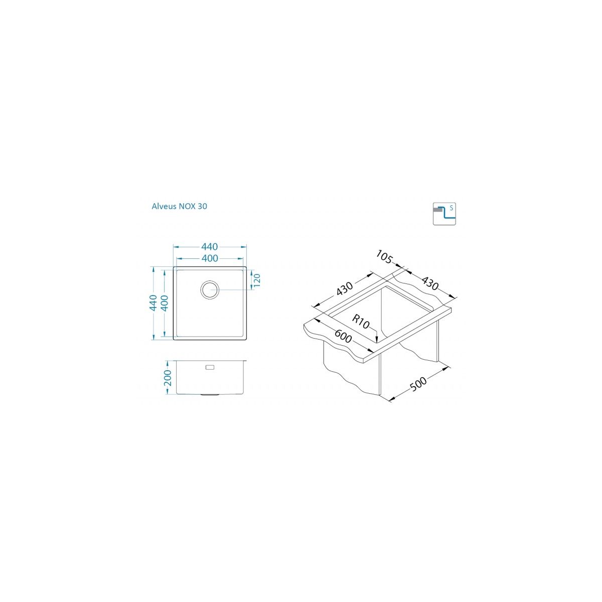 Alveus Nox stahlspüle 44x44 cm stahl 1149924