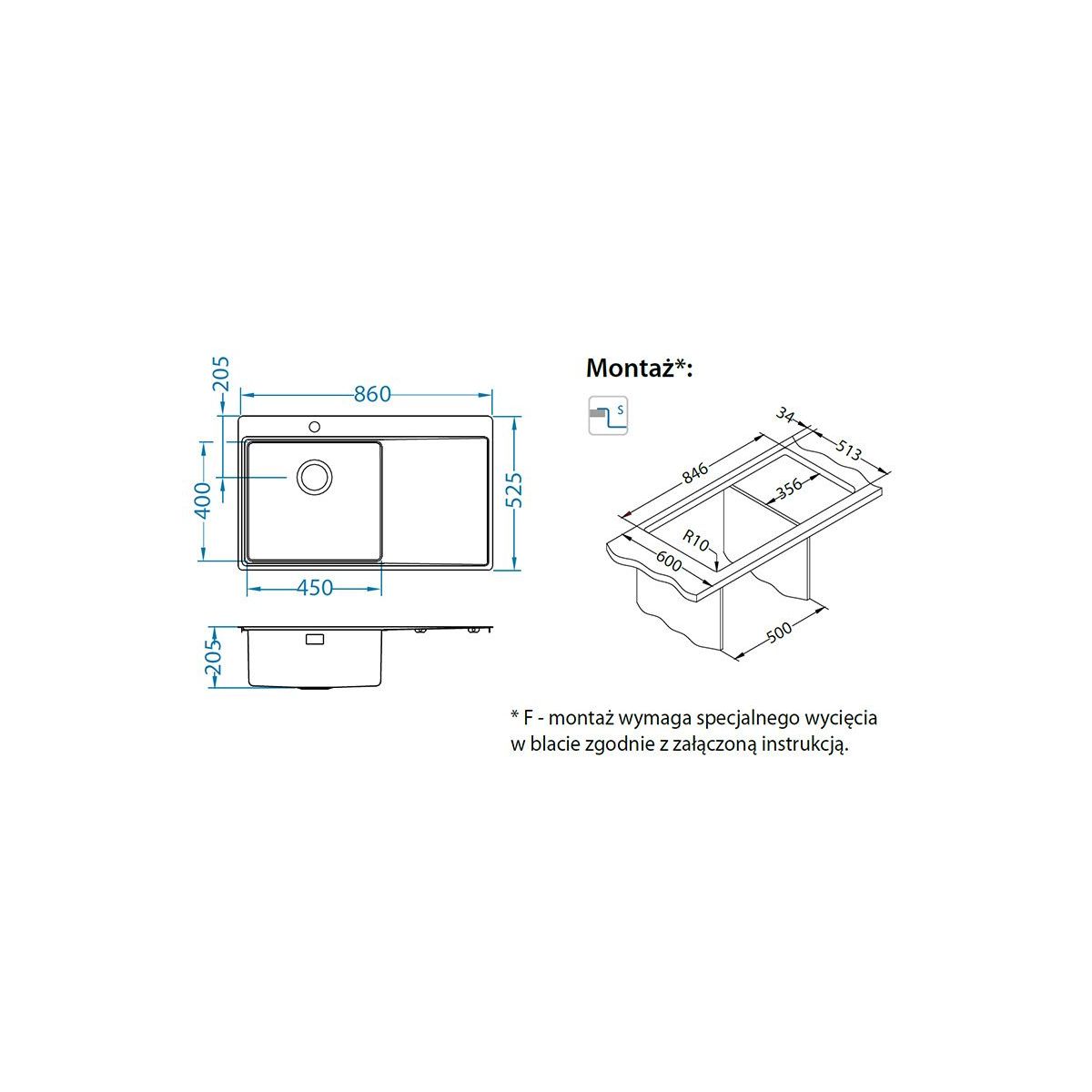 - zwei Einbauoptionen - bündig mit der Arbeitsplatte (F für 50 cm Unterbau), versenkt mit flachen Kanten (S mit 50 cm Unterbau)