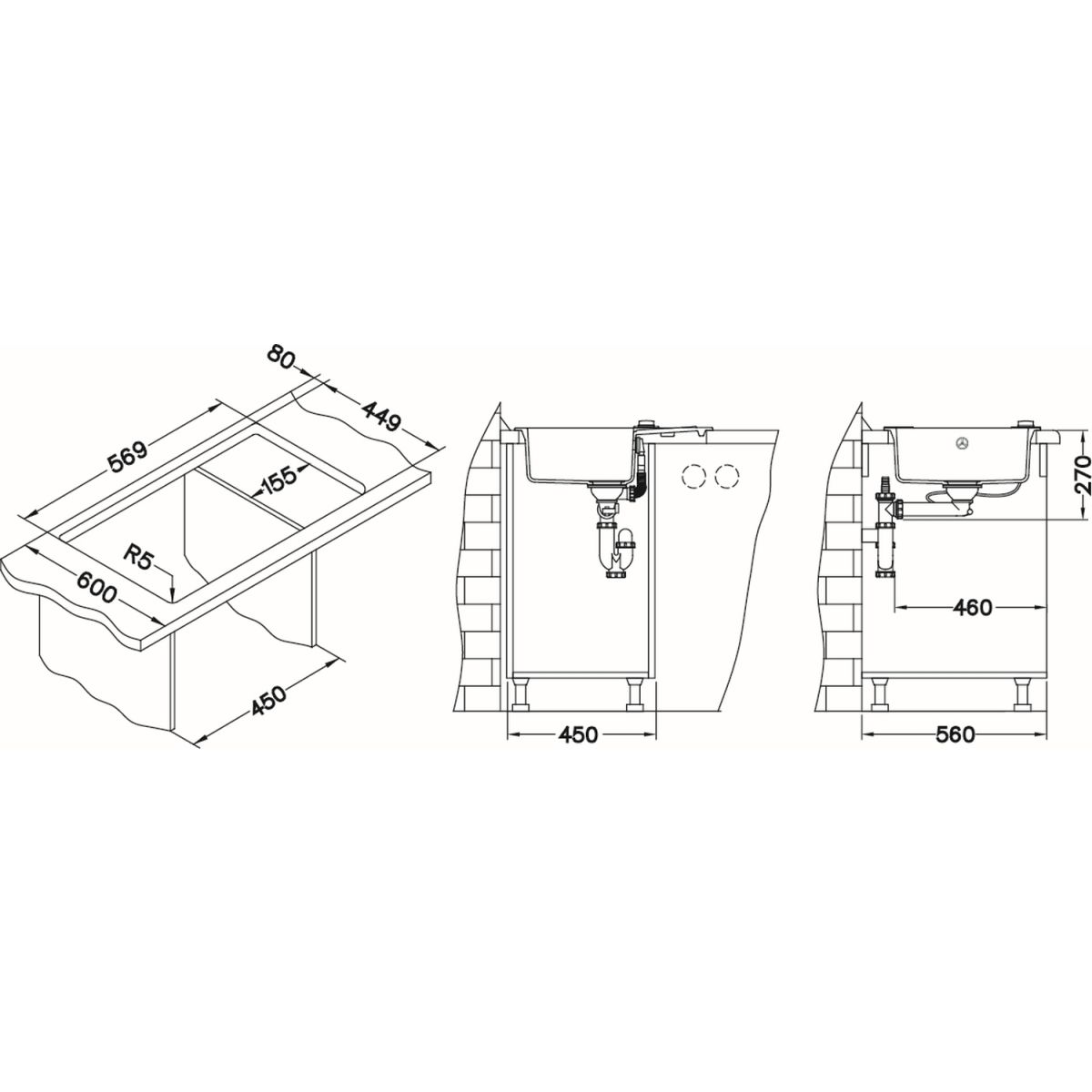 Alveus Rock Granitspüle 59.5x47.5 cm schwarz 1213091