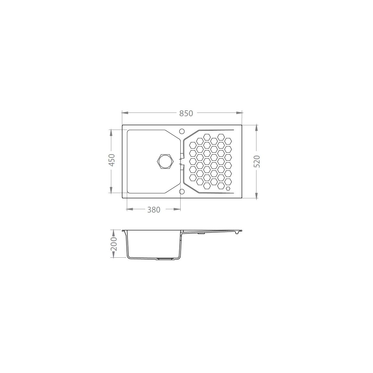 - Material: Granital (enthält ca. 80 % Granitpartikel – Quarz, verbunden mit einem hochwertigen Harzbindemittel von ca. 20 %)