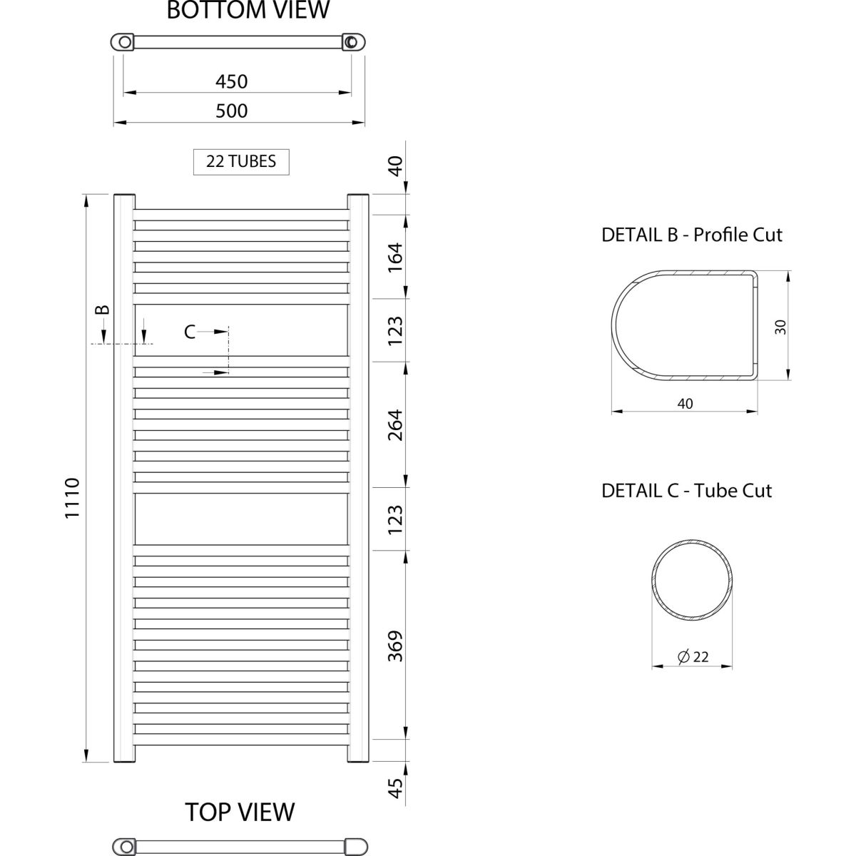 Wenn der Heizkörper ausschließlich elektrisch beheizt wird, d. h. mit einem Heizelement, muss zusätzlich eine ½"-Blende für den Heizkörper gekauft werden, um die zweite Öffnung im Heizkörper zu verschließen, die sonst für den Anschluss an die Zentralheizung verwendet würde.