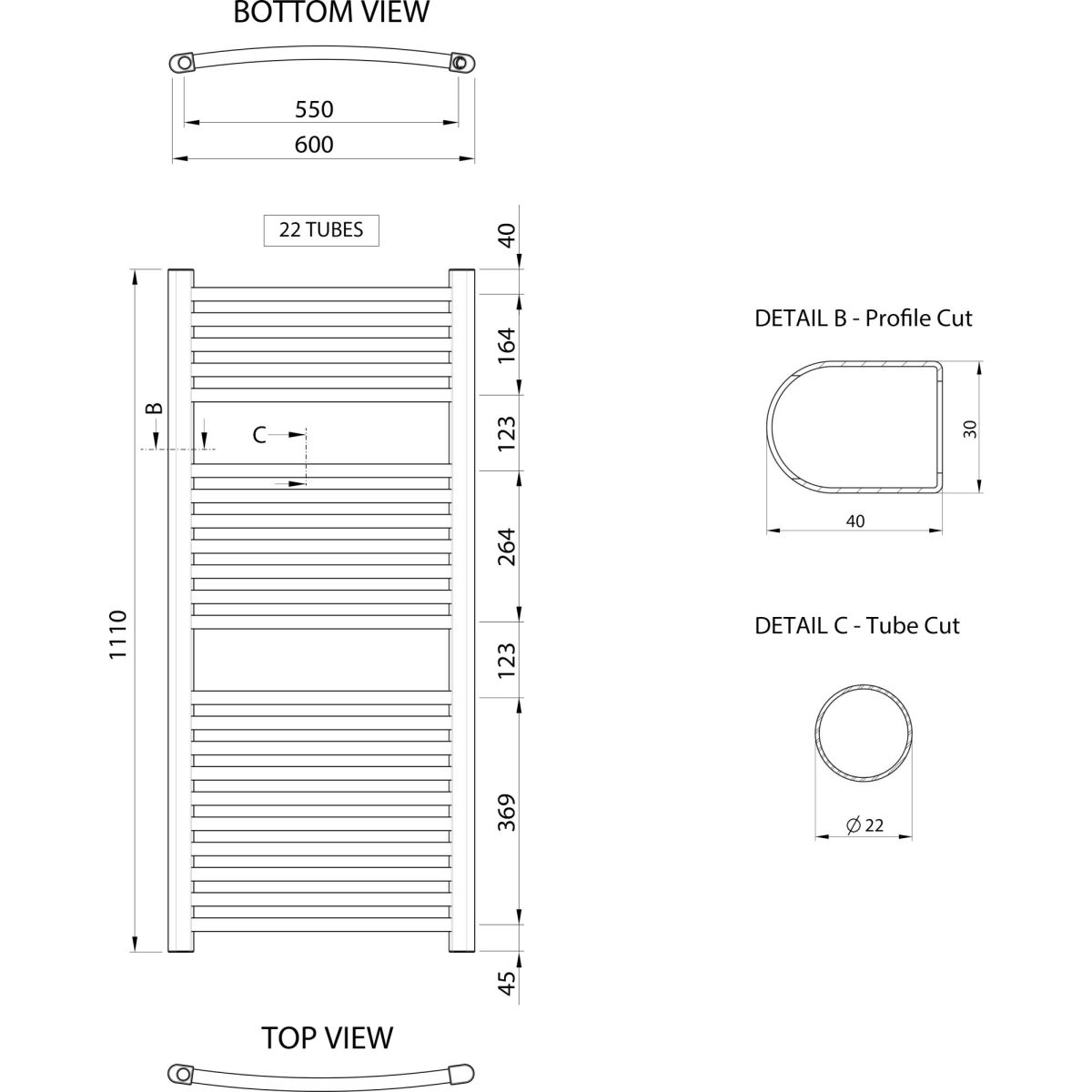 Aqualine Alya Badezimmerheizkörper Leiter 111x60 cm chrom LLC202