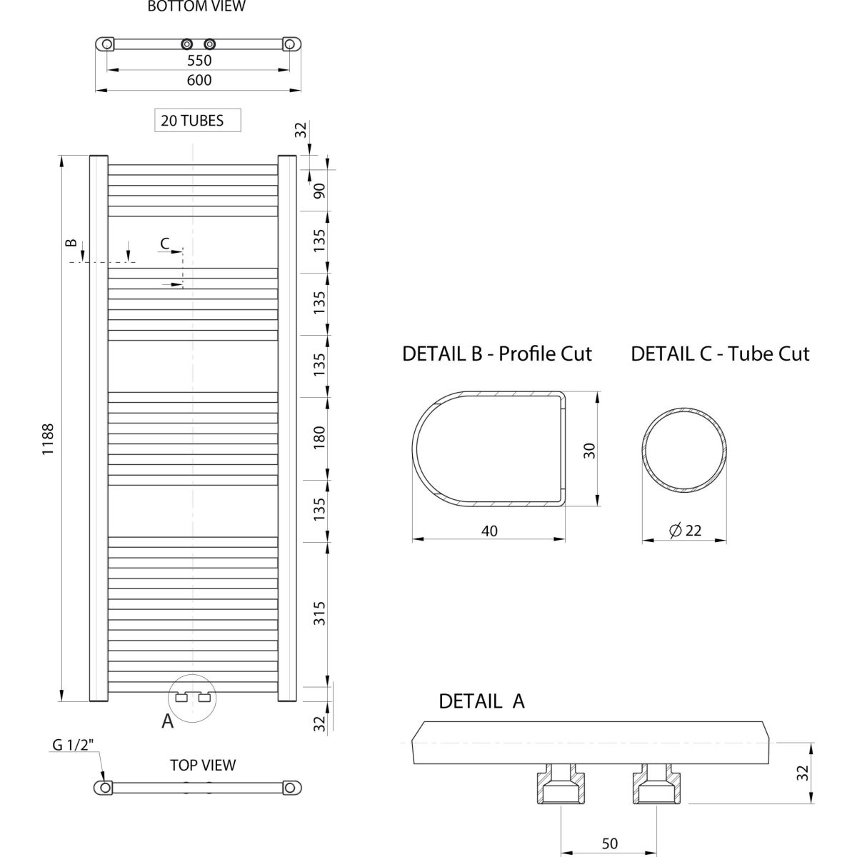 - Anschlussabstand: 50 mm