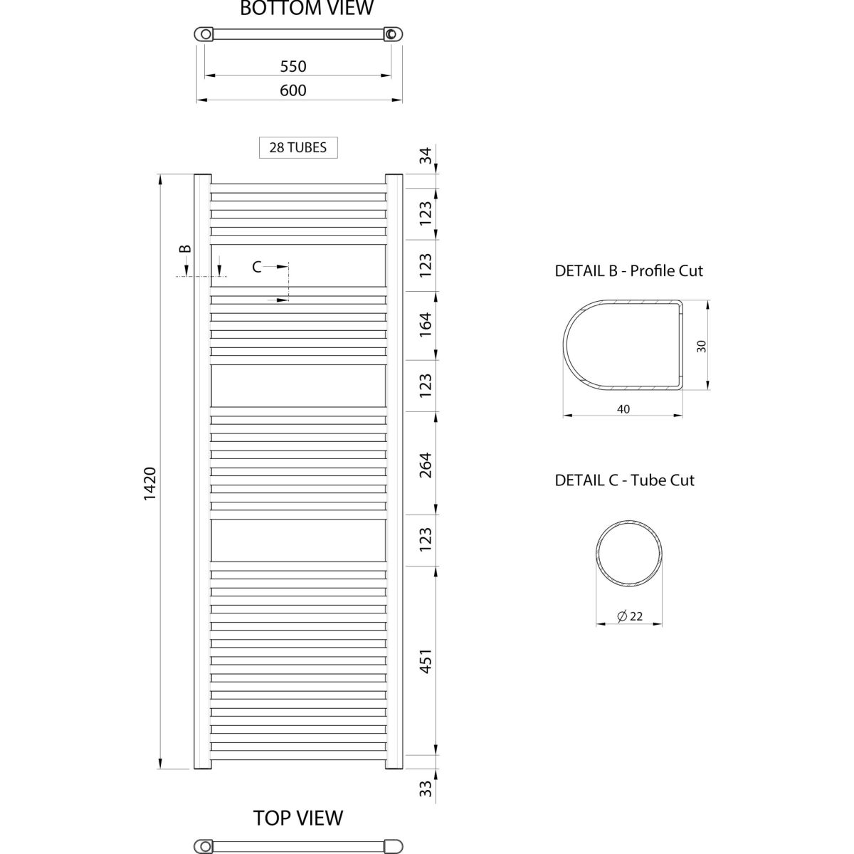 - Anschlussabstand: 550 mm