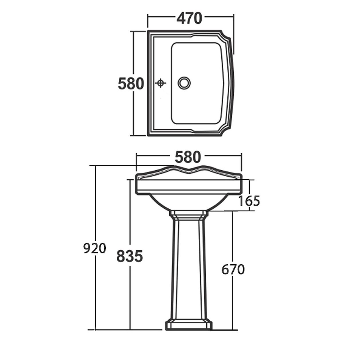 Aqualine Antik Waschbecken 58x47 cm rechteckig Klassisch weiß AK102