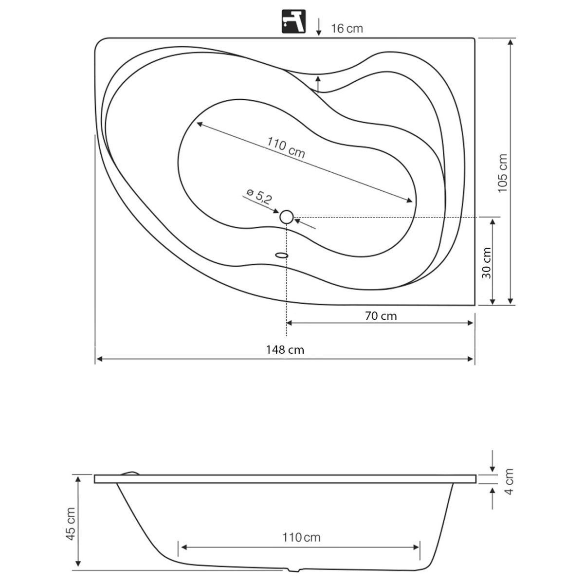 Aqualine Cidlina Eckbadewanne 148x105 cm rechtsseitig weiß G3619