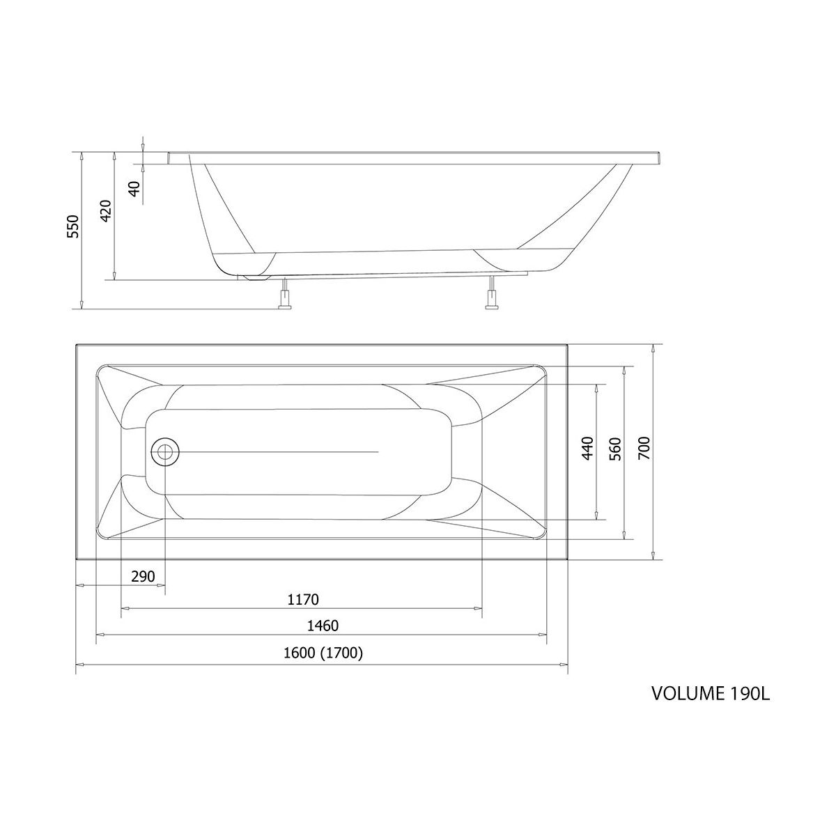 Aqualine Doubrava Rechteckige Badewanne 170x70 cm weiß A1770