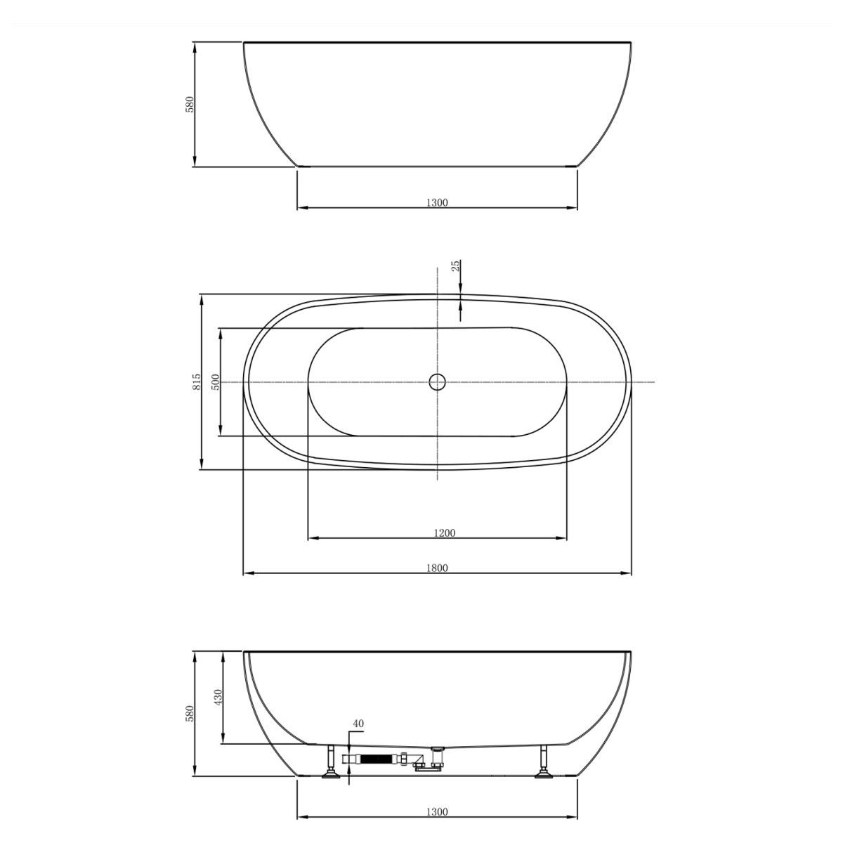 Aqualine Douro Freistehende Badewanne 180x81.5 cm oval weiß E1880