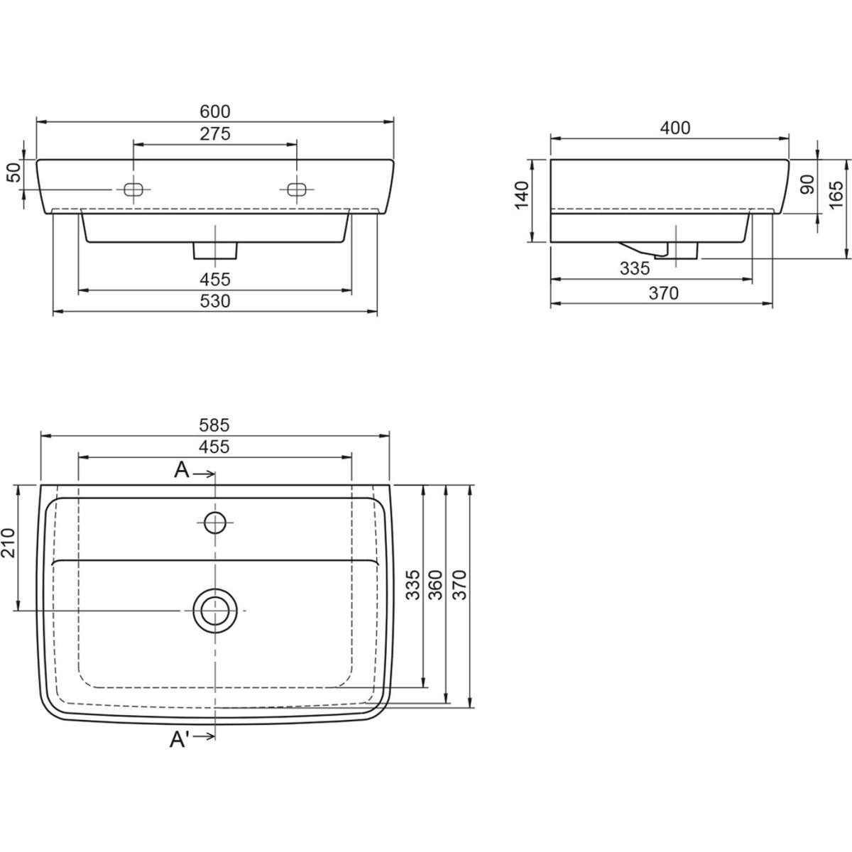 Aqualine Duru Waschbecken 60x40 cm rechteckig Klassisch-Möbel weiß TU0351
