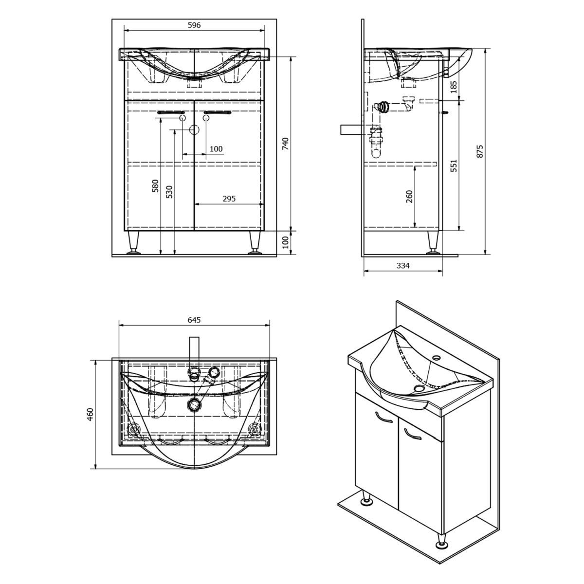Aqualine Keramia Fresh Kabinett 59.6x33.4x74 cm Unterschrank hängend eiche 50065