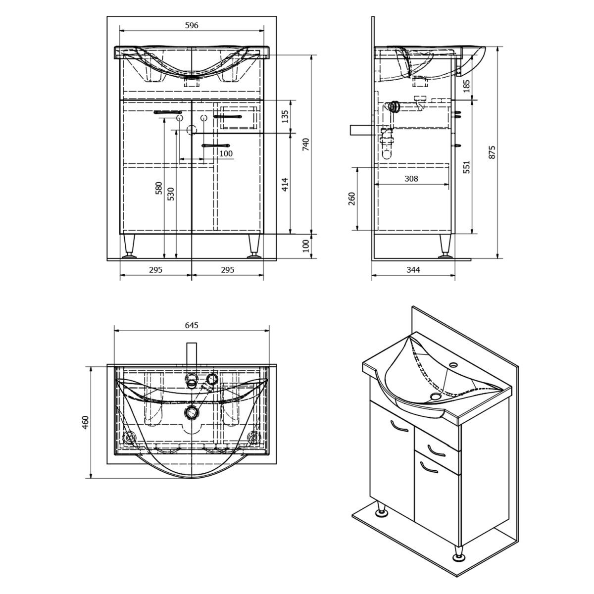 Aqualine Keramia Fresh Kabinett 59.6x34.4x74 cm Unterschrank hängend eiche 50066