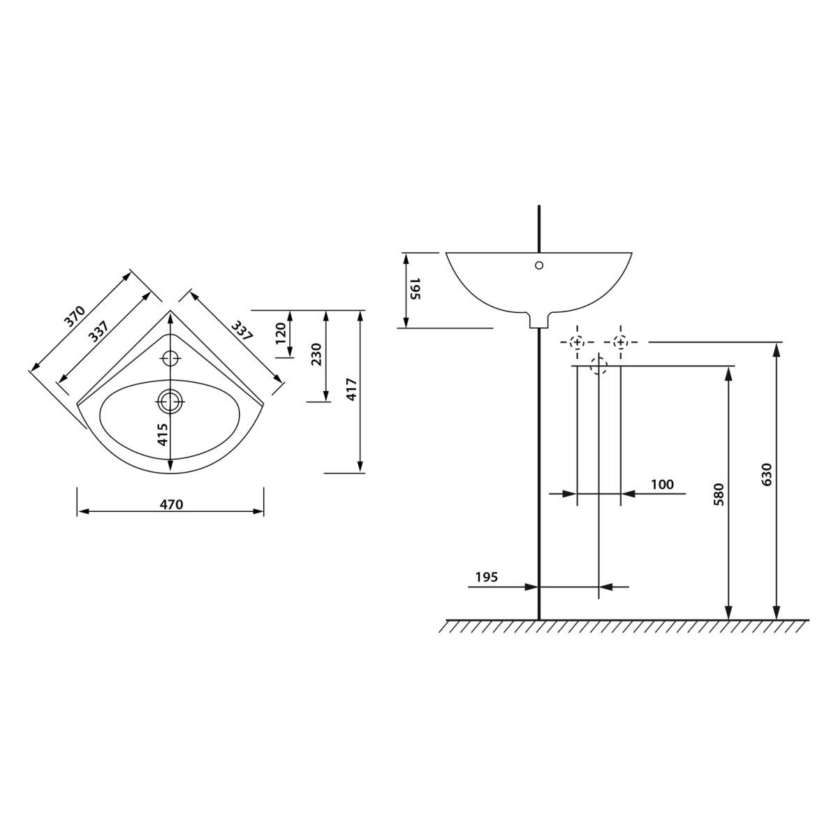Aqualine Luigi Waschbecken 33.7x33.7 cm eckwaschbecken Klassisch weiß FS161