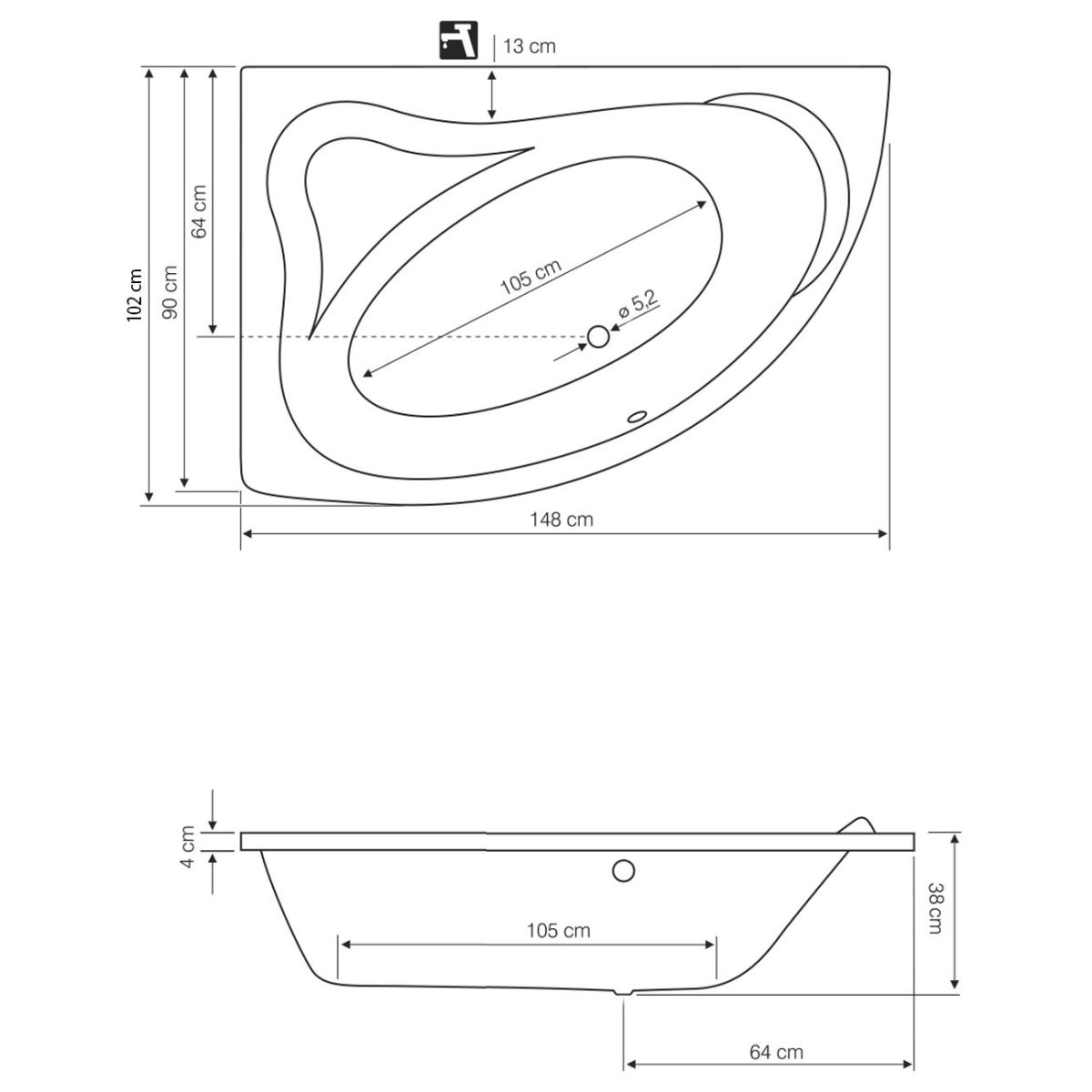 Aqualine Orava Eckbadewanne 148x90 cm linksseitig weiß G1590