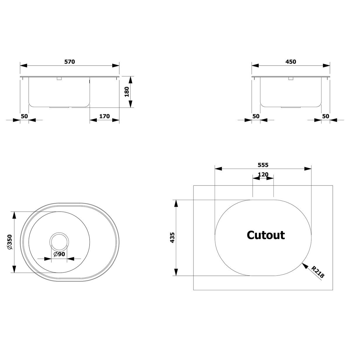 Aqualine stahlspüle 57x45 cm AQ5745B