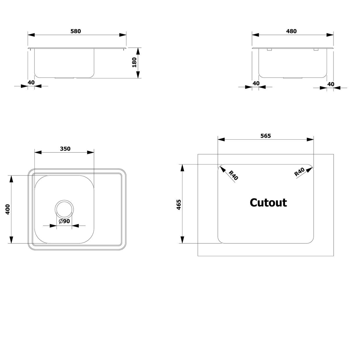 - Abmessungen des Spülbeckens: 58 x 48 cm