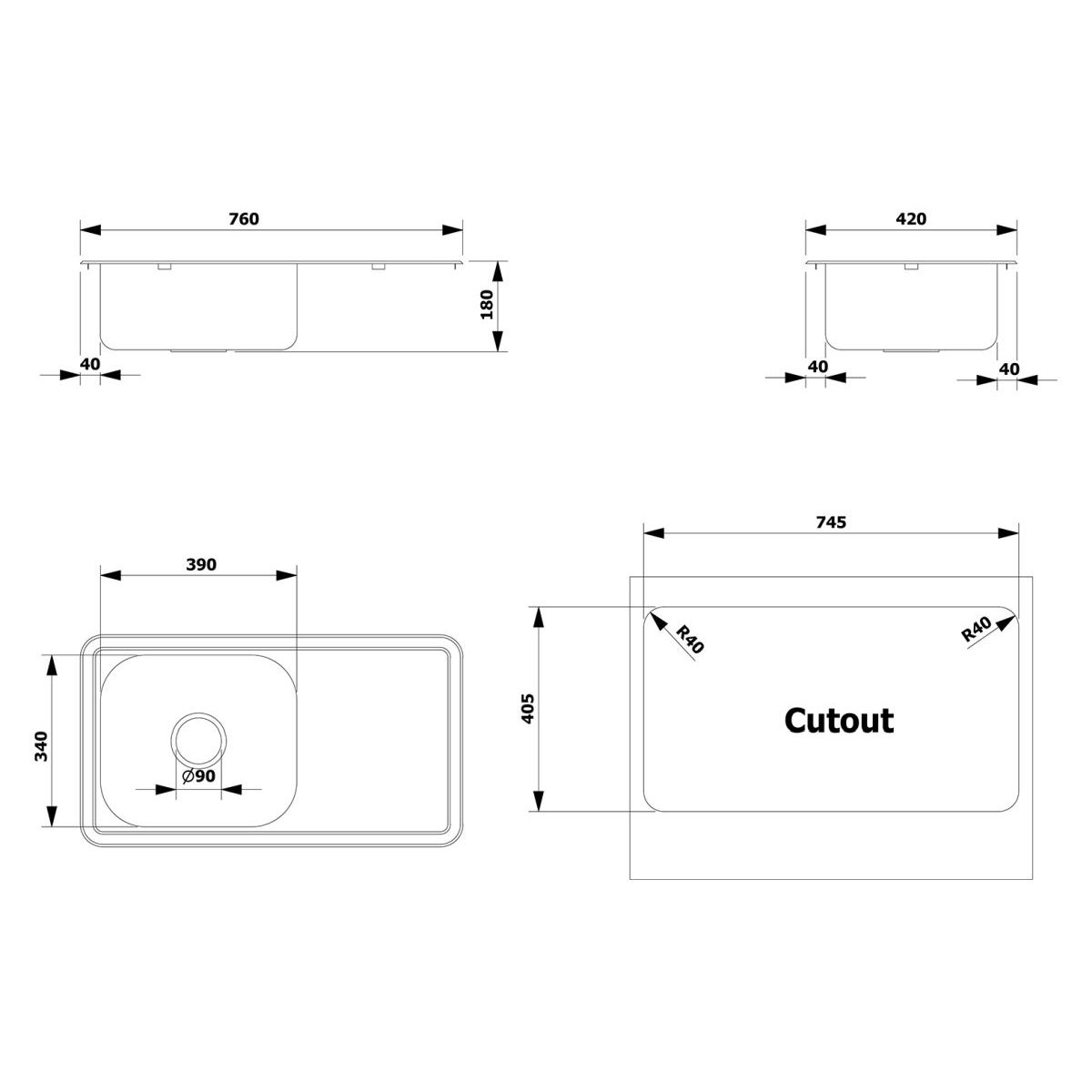 Aqualine Stahlspüle 76x42 cm AQ7642B