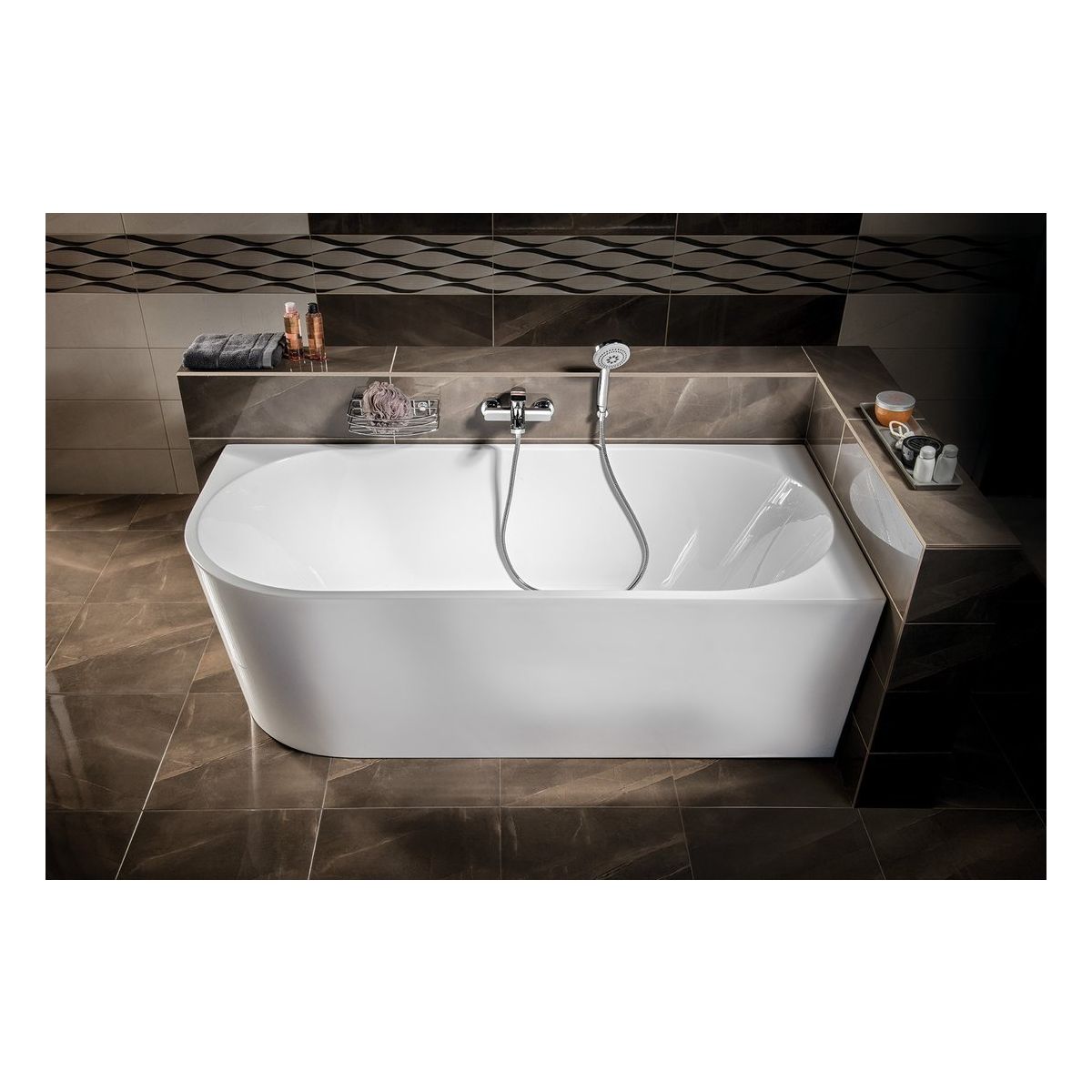 Aqualine Tibera Wandmontierte Badewanne 170x80 cm oval weiß E1015
