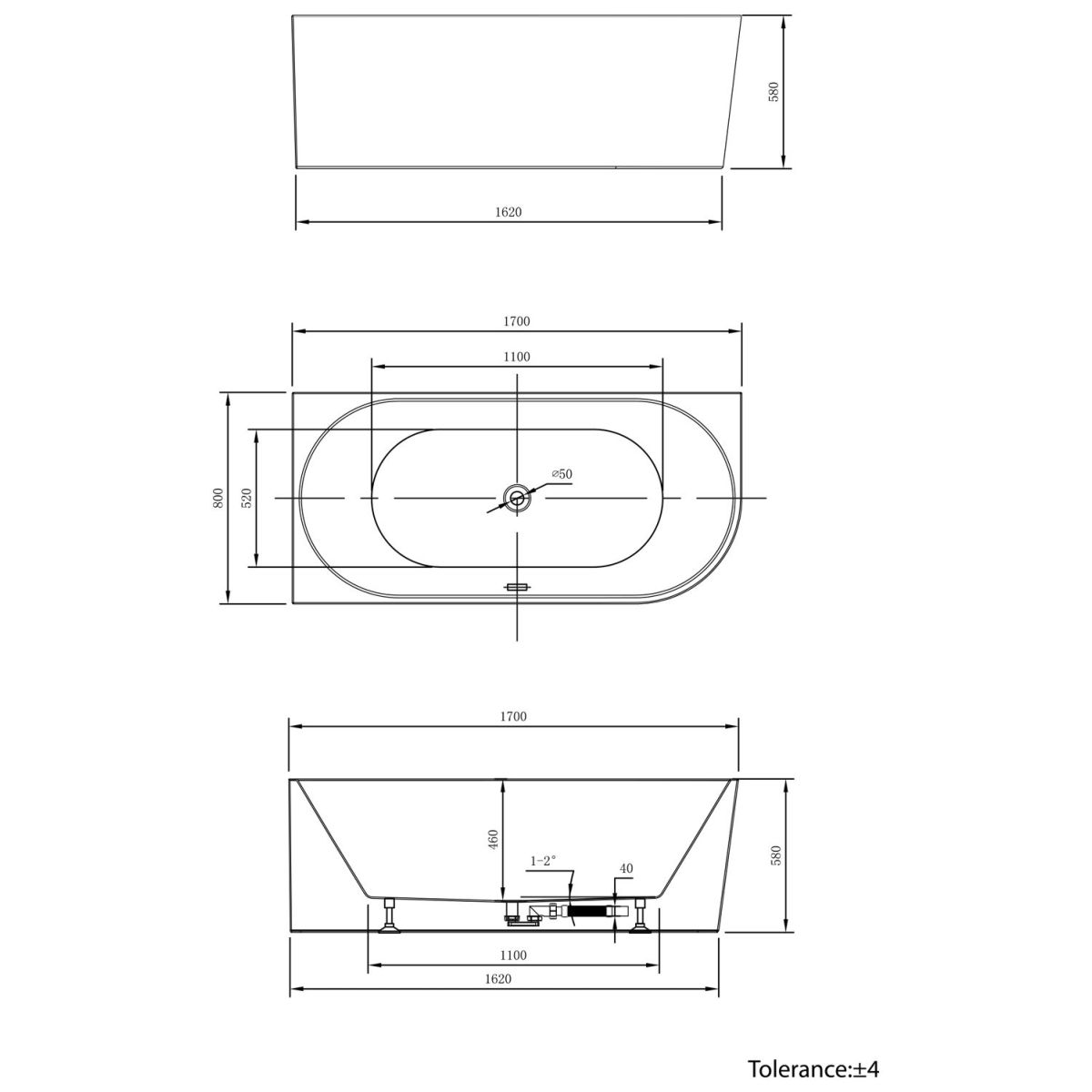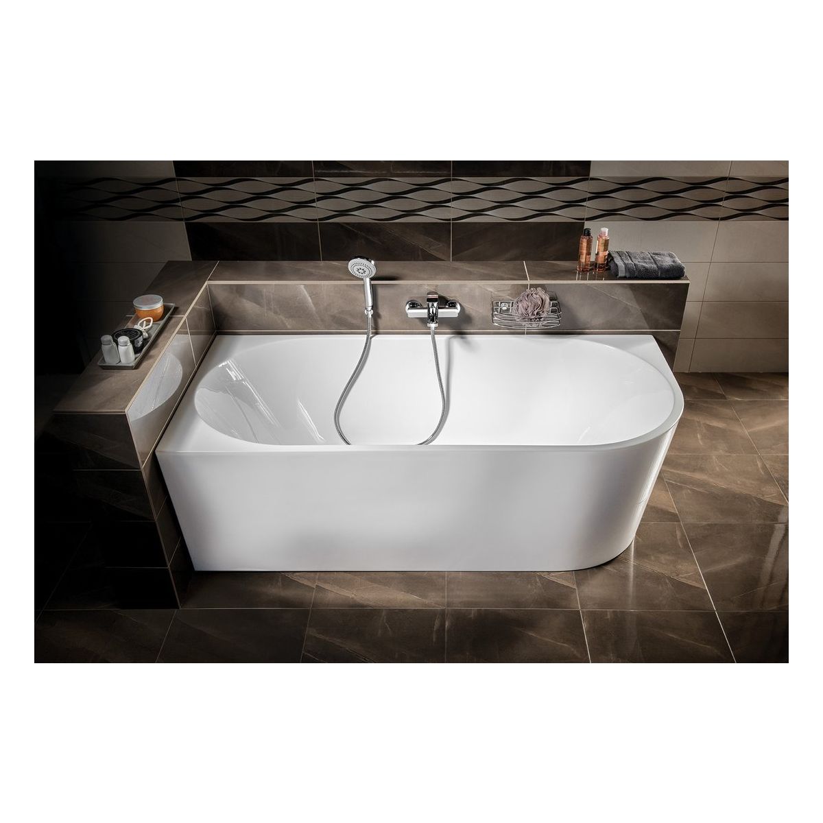 Aqualine Tibera Wandmontierte Badewanne 170x80 cm oval weiß E1026