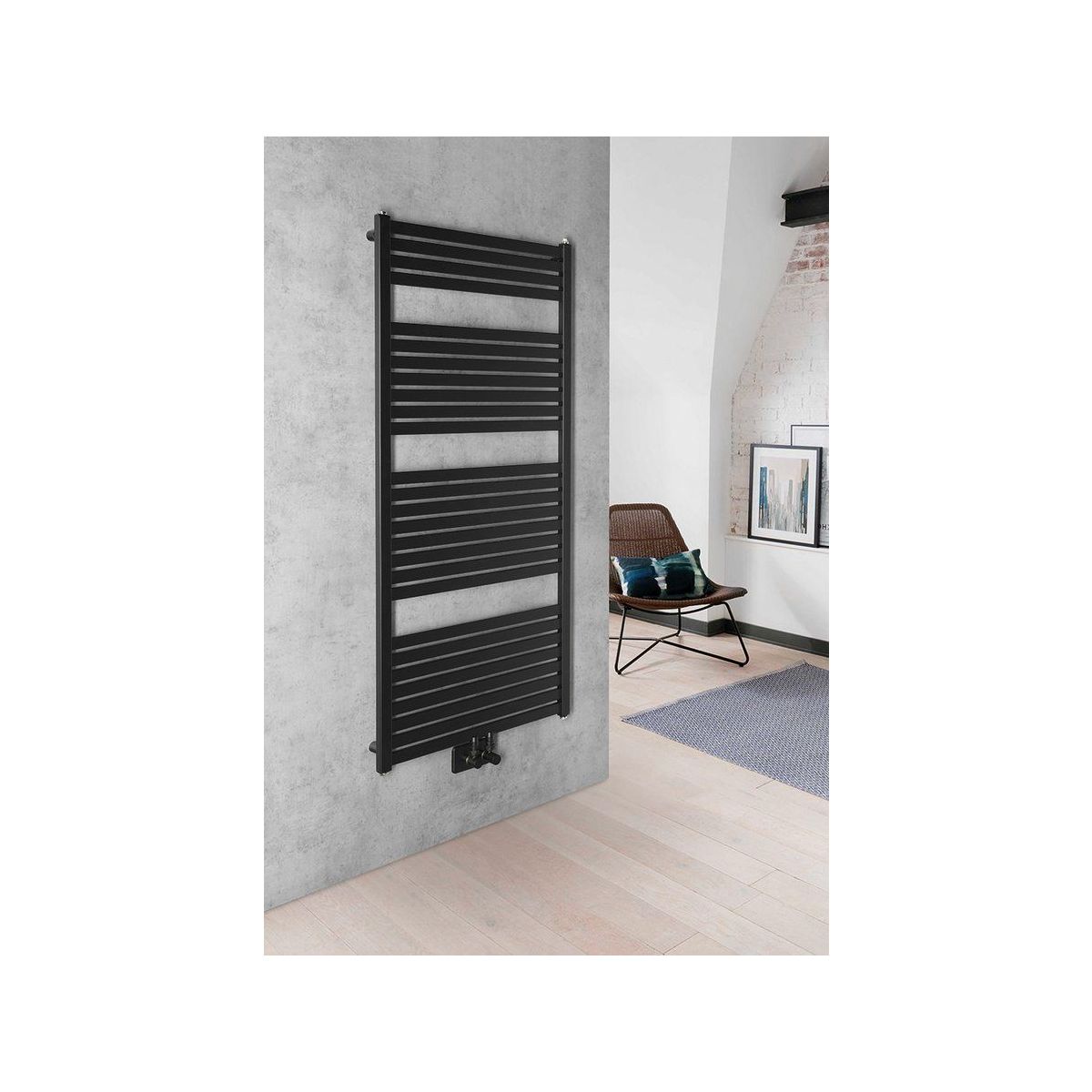 Zeitlose Stahlheizkörper aus Flachprofilen, erhältlich in zwei Farben.
