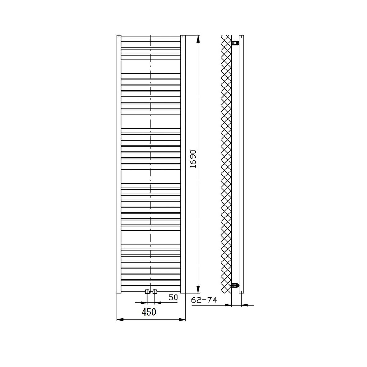 Aqualine Tondi Badezimmerheizkörper dekorativ 169x45 cm schwarz DT446T