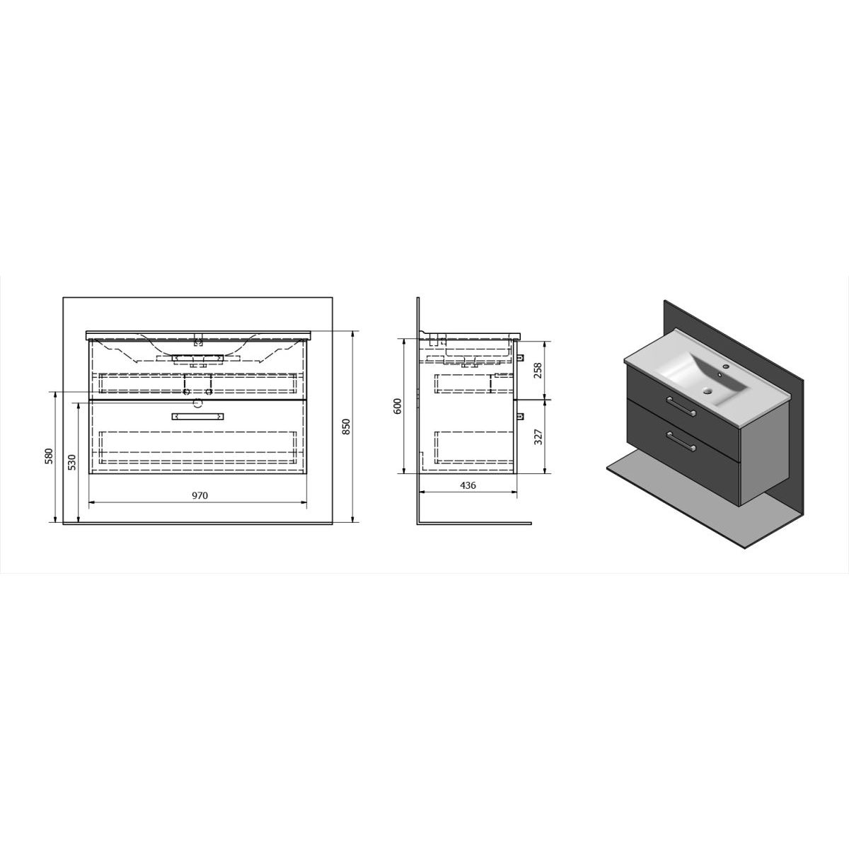 Aqualine Vega Kabinett 97x43.6x60 cm Unterschrank hängend weiß VG103
