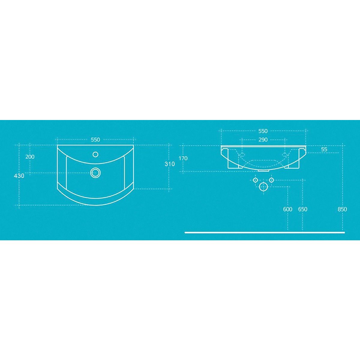Aqualine Zero Waschbecken 55x43 cm halbrund Möbel weiß 6055