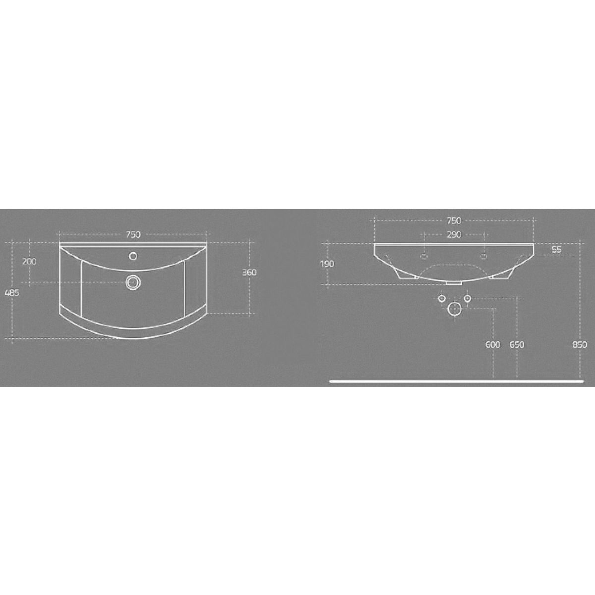 Aqualine Zero Waschbecken 75x48.5 cm rechteckig Klassisch-Möbel weiß 6075