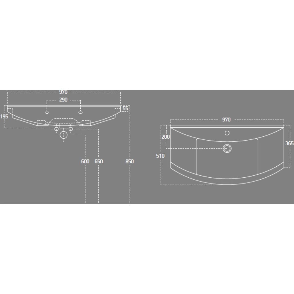 Aqualine Zero Waschbecken 97x51 cm halbrund Klassisch-Möbel weiß 6095