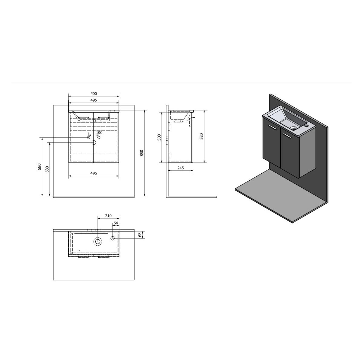 Aqualine Zoja Kabinett 49.5x24.5x50 cm Unterschrank hängend weiß 51047A