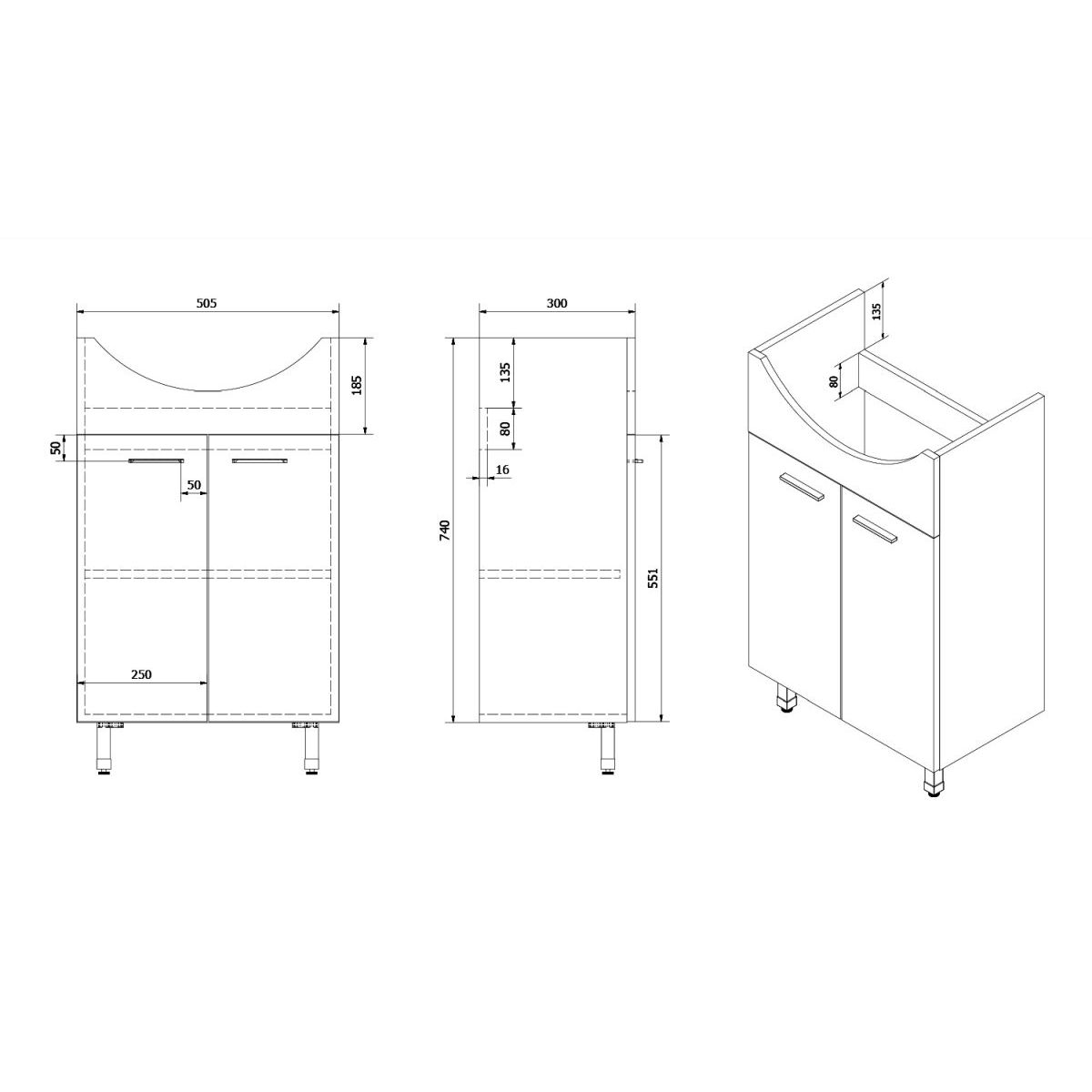 Aqualine Zoja Kabinett 50.5x30x74 cm Unterschrank hängend weiß 51055A