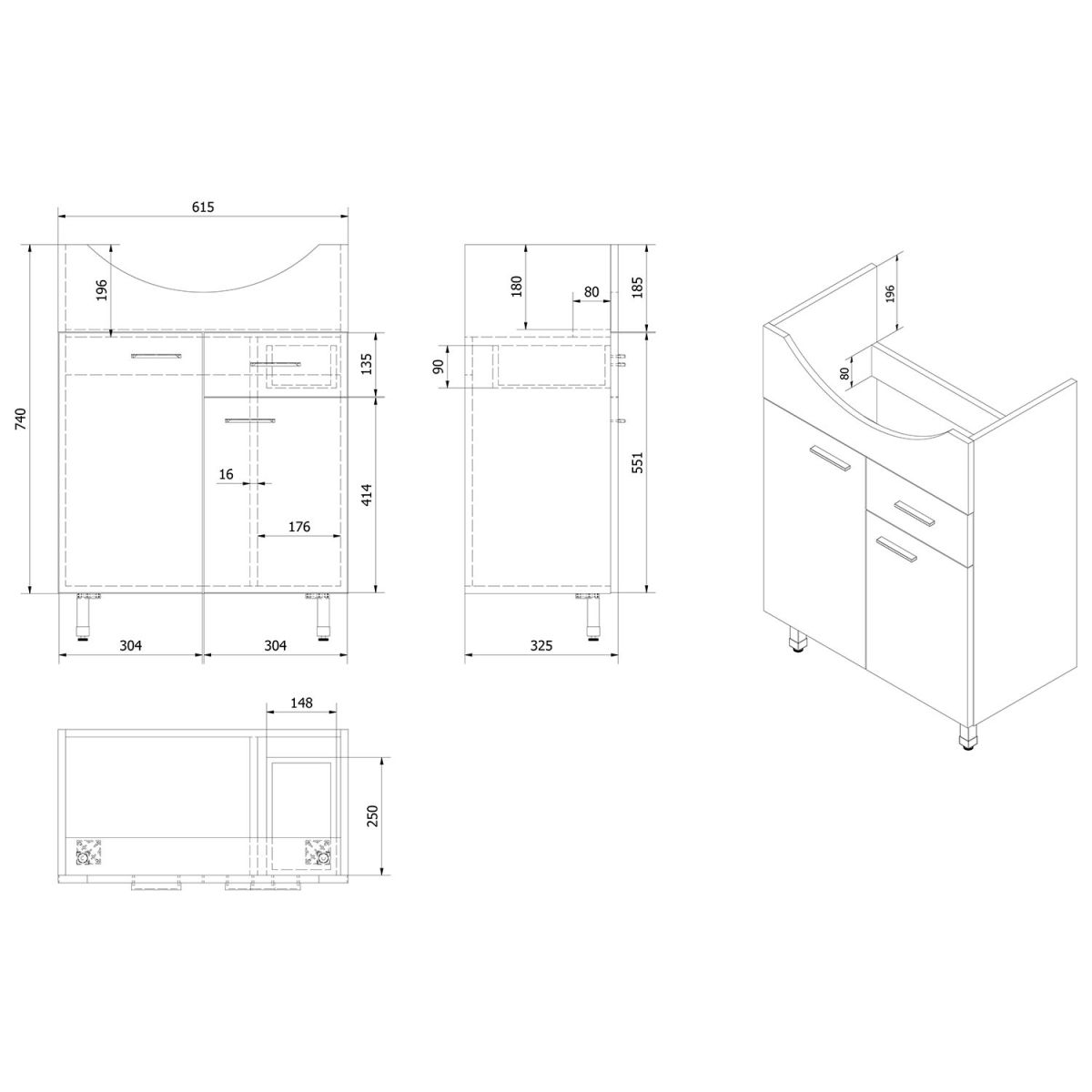 Aqualine Zoja Kabinett 60x32x74 cm Unterschrank stehend weiß 51065A