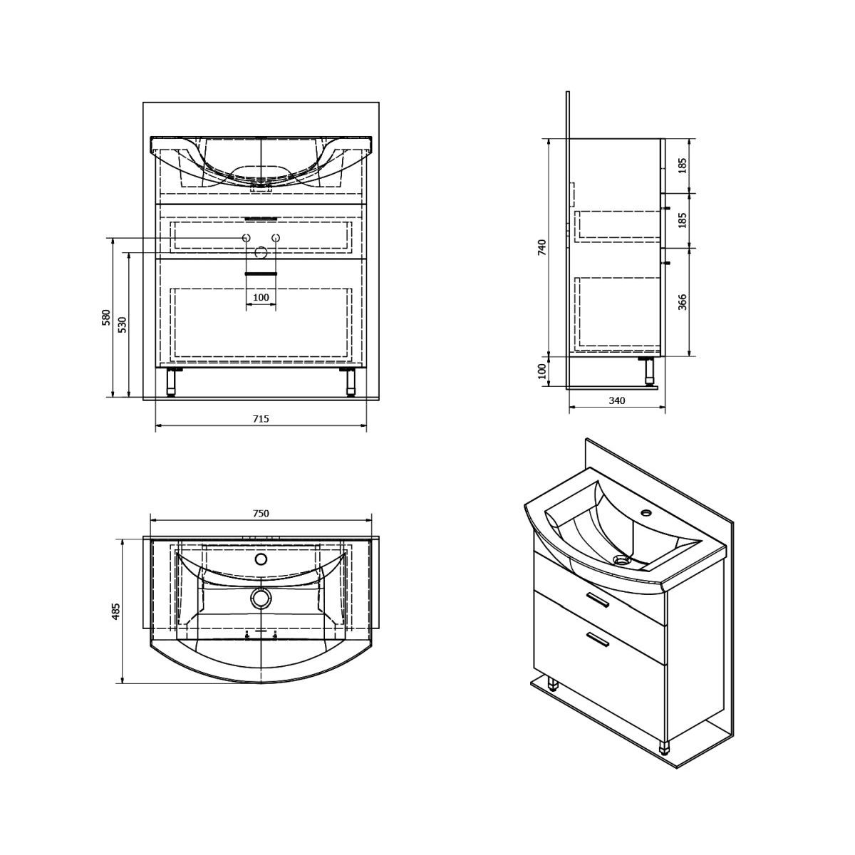Aqualine Zoja Kabinett 71.5x34x74 cm Unterschrank hängend weiß 51071A