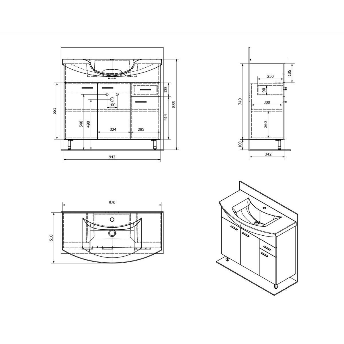 Aqualine Zoja Kabinett 94.2x34.2x74 cm Unterschrank hängend weiß 51094A