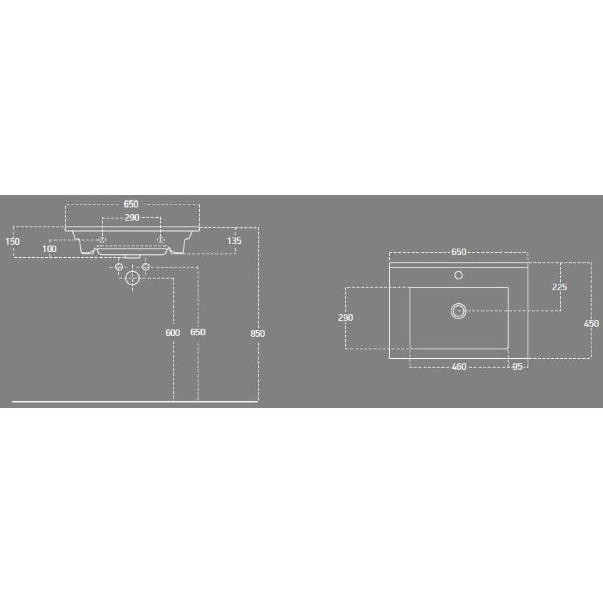 Aqualine Zuno Waschbecken 65x45 cm rechteckig Klassisch-Möbel weiß 9065