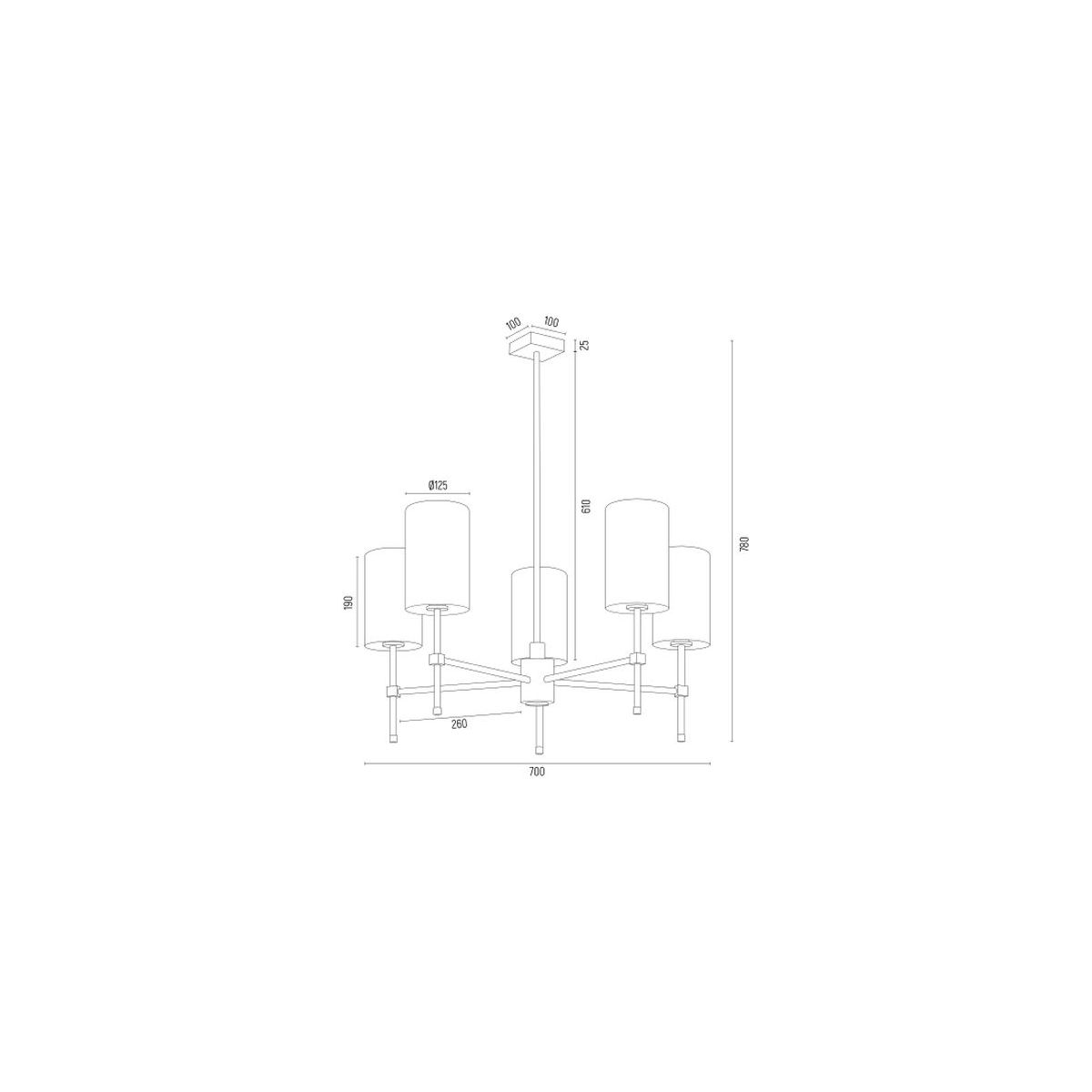 Ein raffinierter Kronleuchter für das Wohnzimmer. Eine riesige Lampe mit Lampenschirmen. Ein fünfarmiger Kronleuchter aus polnischer Produktion mit einem Gestell aus Messing. Eine stilvolle, glamouröse Lampe aus polnischer Produktion. Abruzzo ist die neueste Lampenkollektion der Leuchtenmanufaktur Argon.